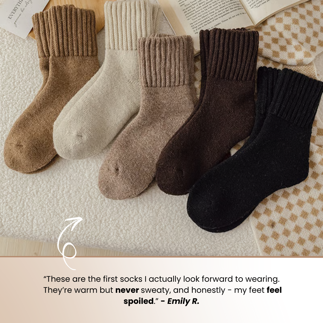 Crafted from ultra-fine merino wool that feels cloud-soft against your skin — no itching, no slipping, just pure comfort with every step.